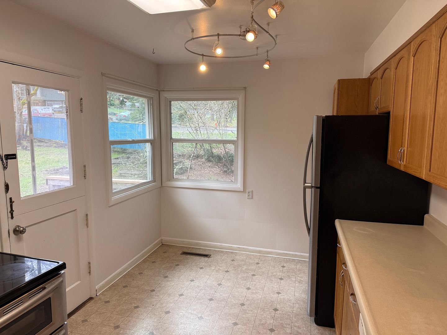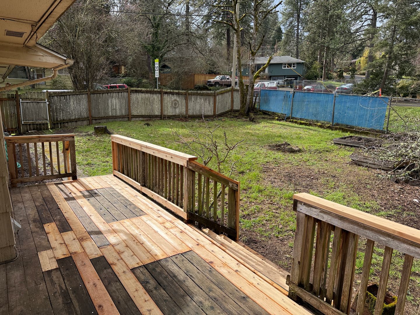 Large fenced backyard.
