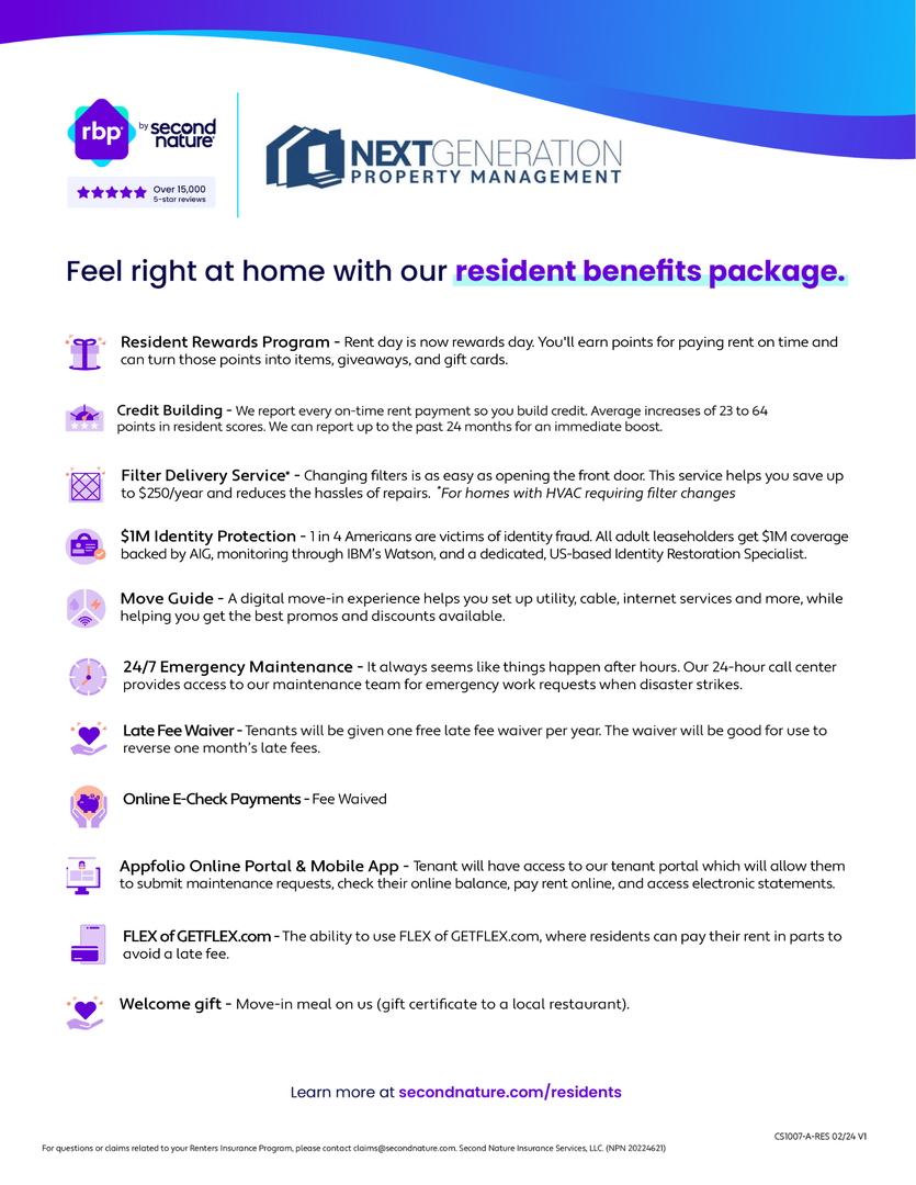 convenient. That’s why we provide a Resident Benefits Package (RBP) to address common headaches
