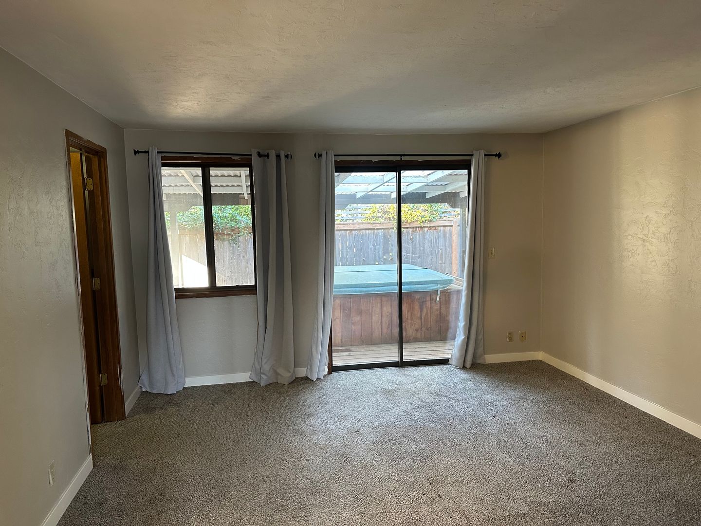 Primary bedroom is attached to the full bath and has a sliding glass door out to the covered deck and a walk in closet!