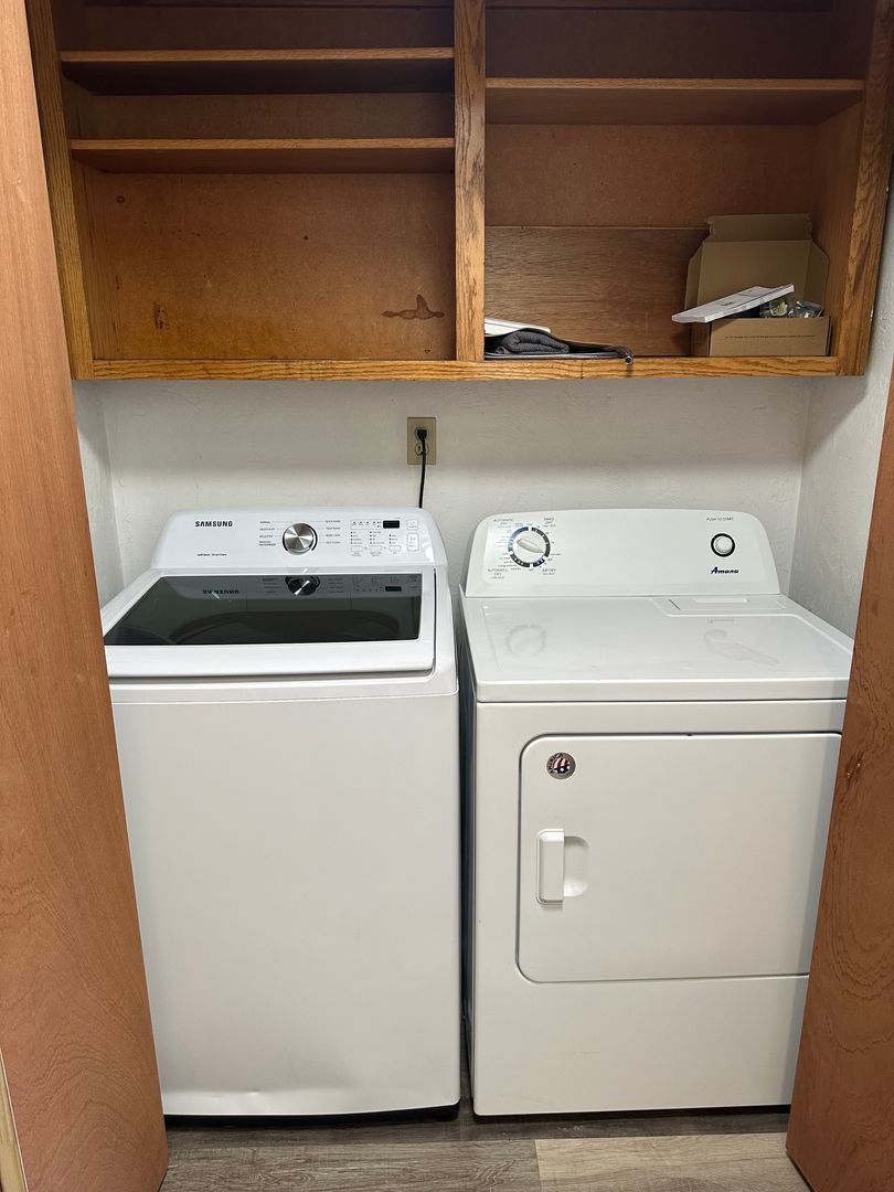 Large 2 car garage! Indoor laundry with a washer and dryer! Half bath!