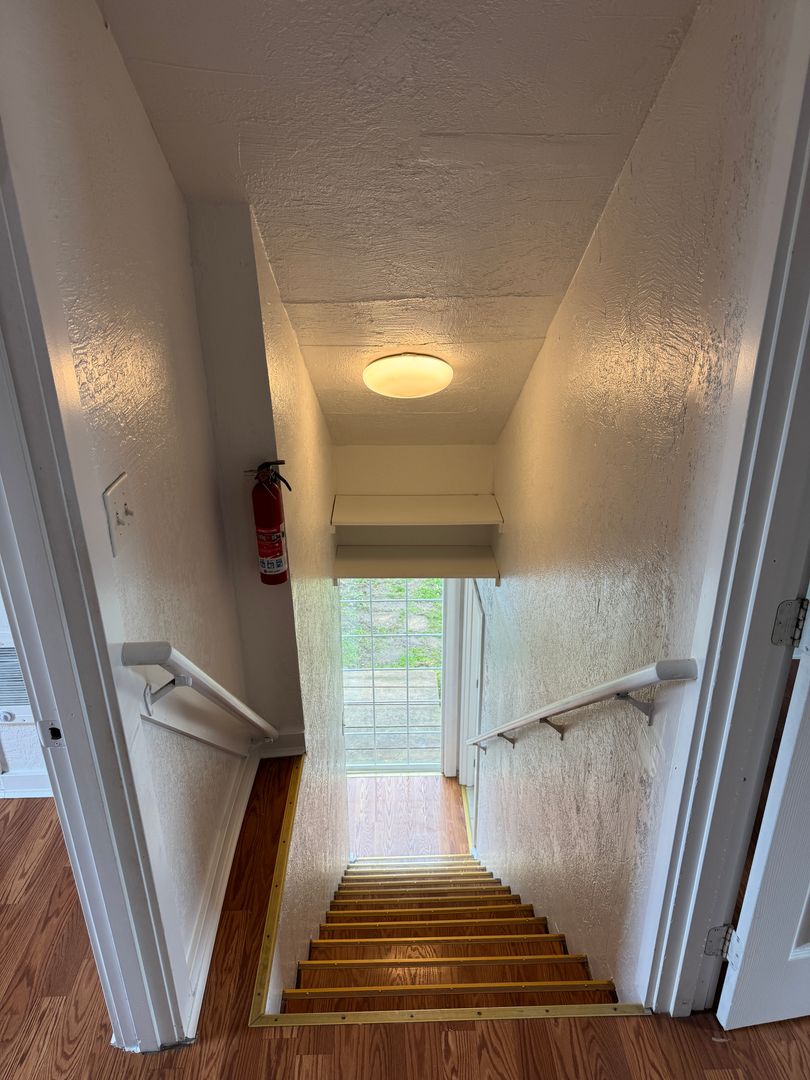 2 bedrooms upstairs, 1 bedroom downstairs and laundry hook ups in the garage.
