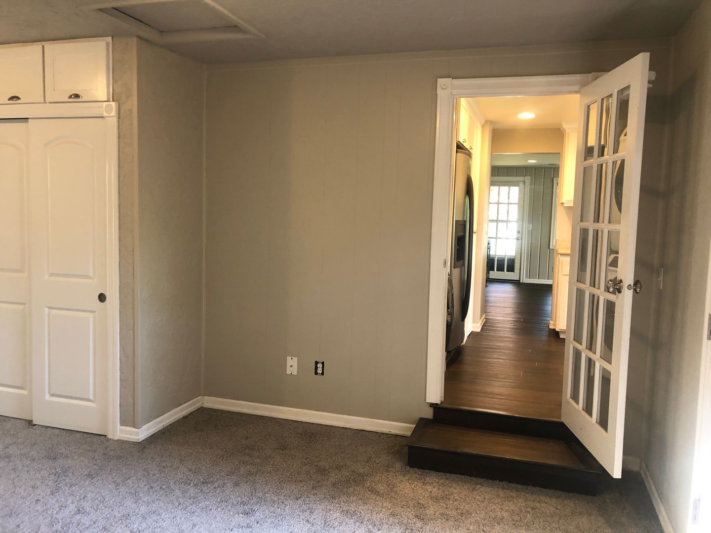 The 3rd bedroom off of the kitchen, has doors to the exterior, can be a bedroom (there's tons of closet space) or a second family room.