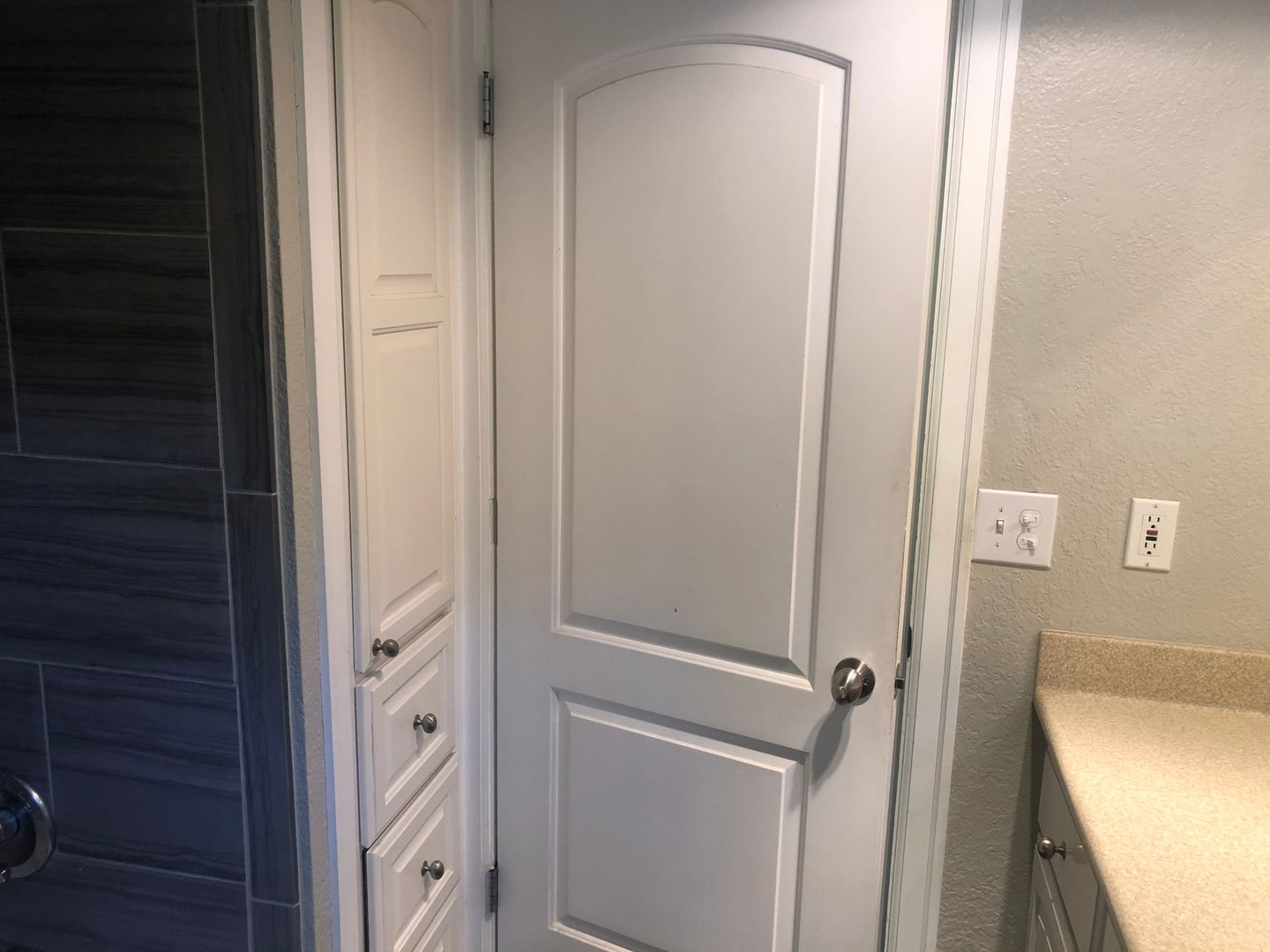 There are 2 bedrooms on one end of the house with the full bathroom. Both bedrooms have wall to wall closet space! The bathroom is light and bright with a tile shower.