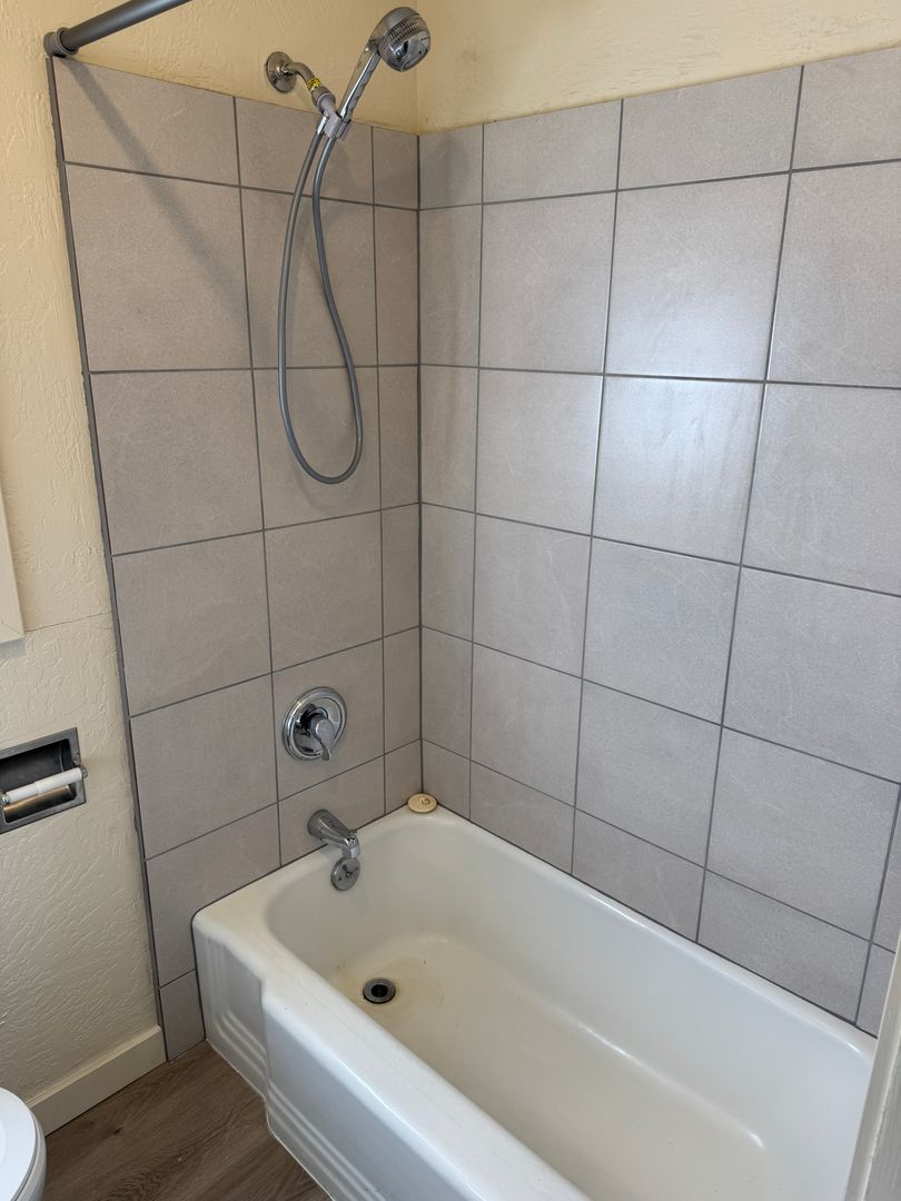 Tile shower surround in the bathroom.