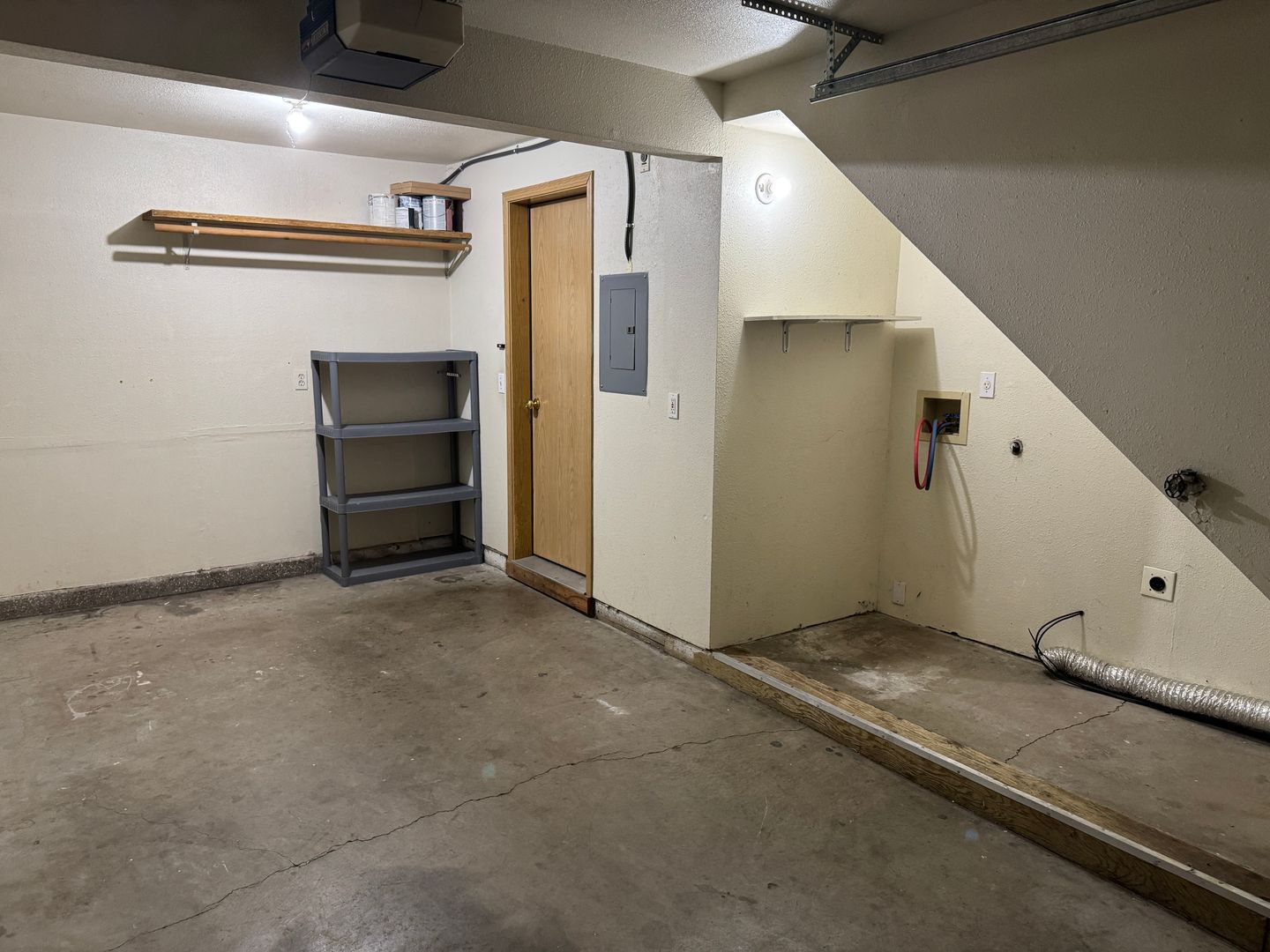 Washer and dryer hookups in the garage. Electric garage door opener!