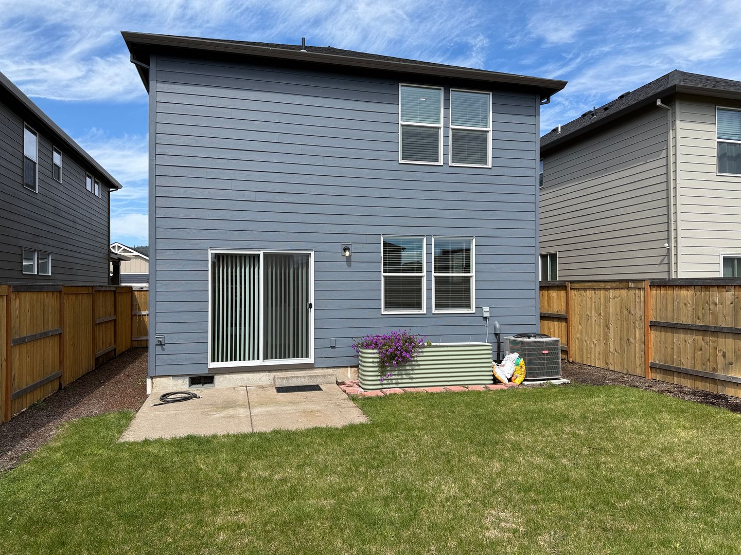 Fenced back yard and a concrete patio area. Perfect for your BBQ!