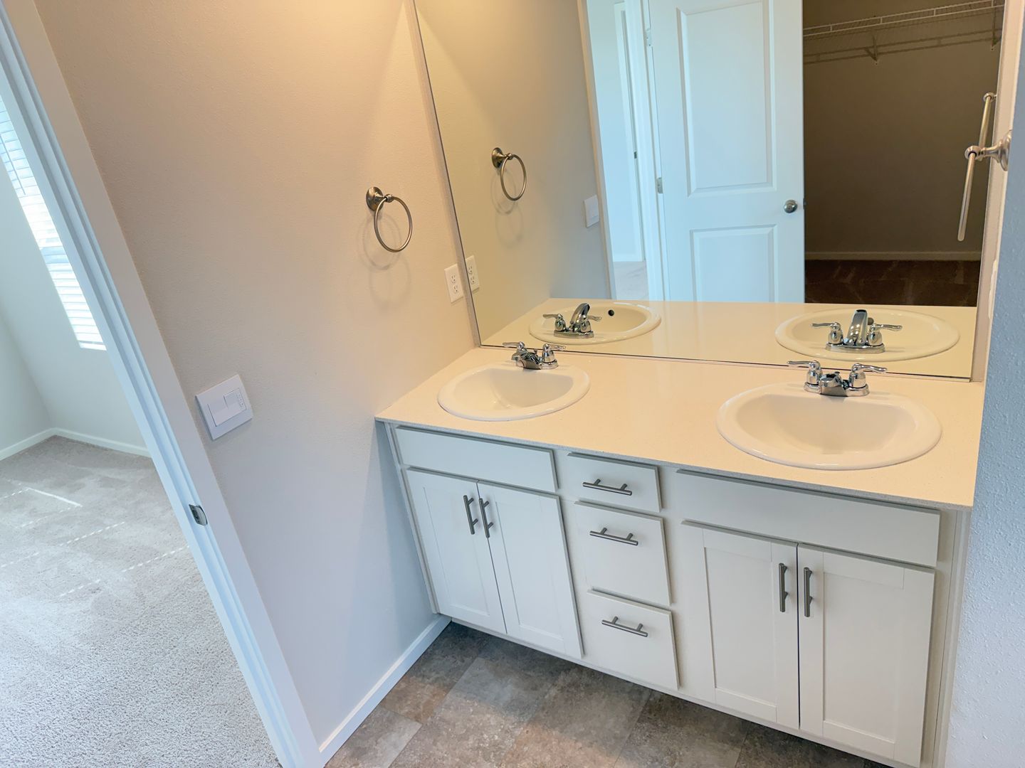 Bedrooms have carpet and large closets. The primary bedroom has a walk-in closet and en suite.