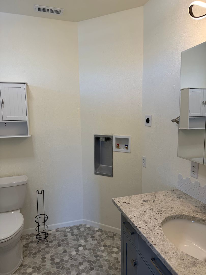 Updated bathroom with a Bluetooth sound compatible fan, custom vanity and a walk in shower!