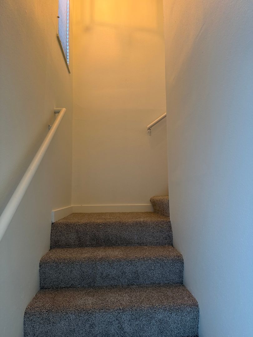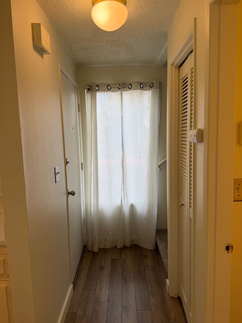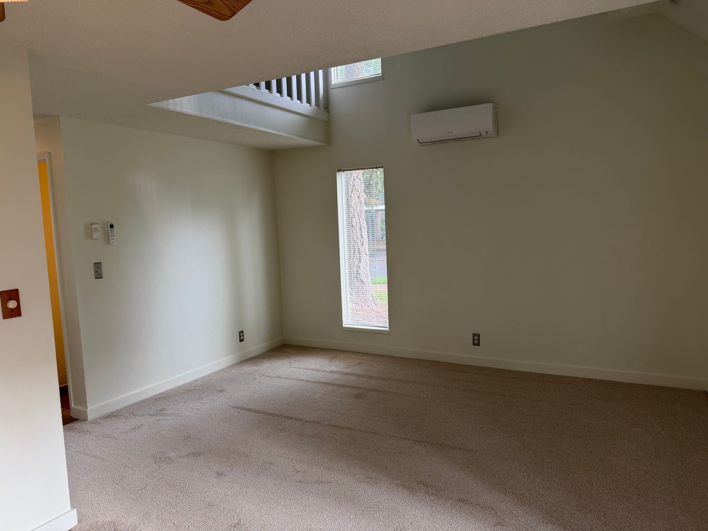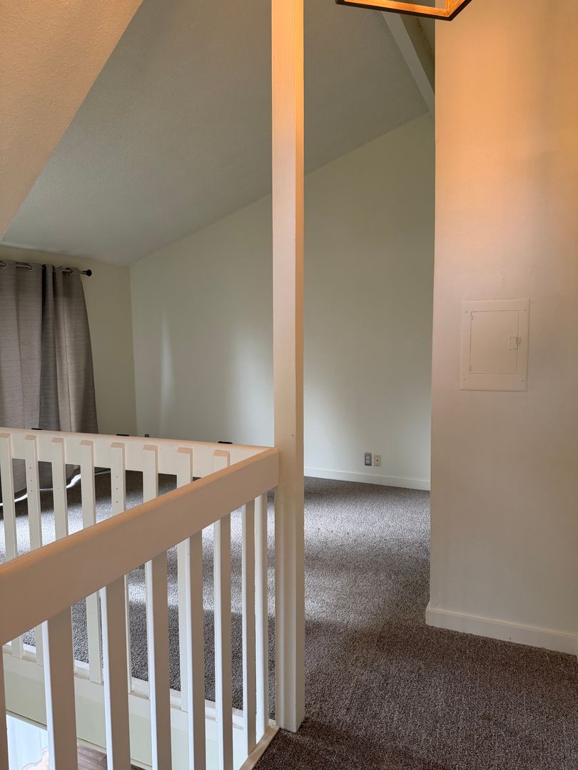 This townhouse features a 1 bedroom loft, 1 1/2 bathrooms, a high ceiling living room and a new ductless heat pump with AC!