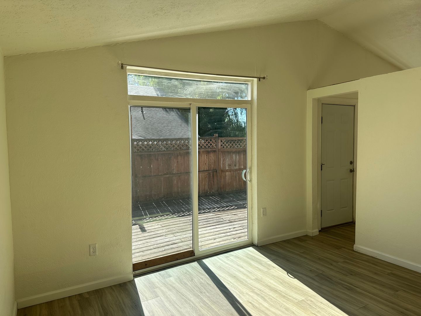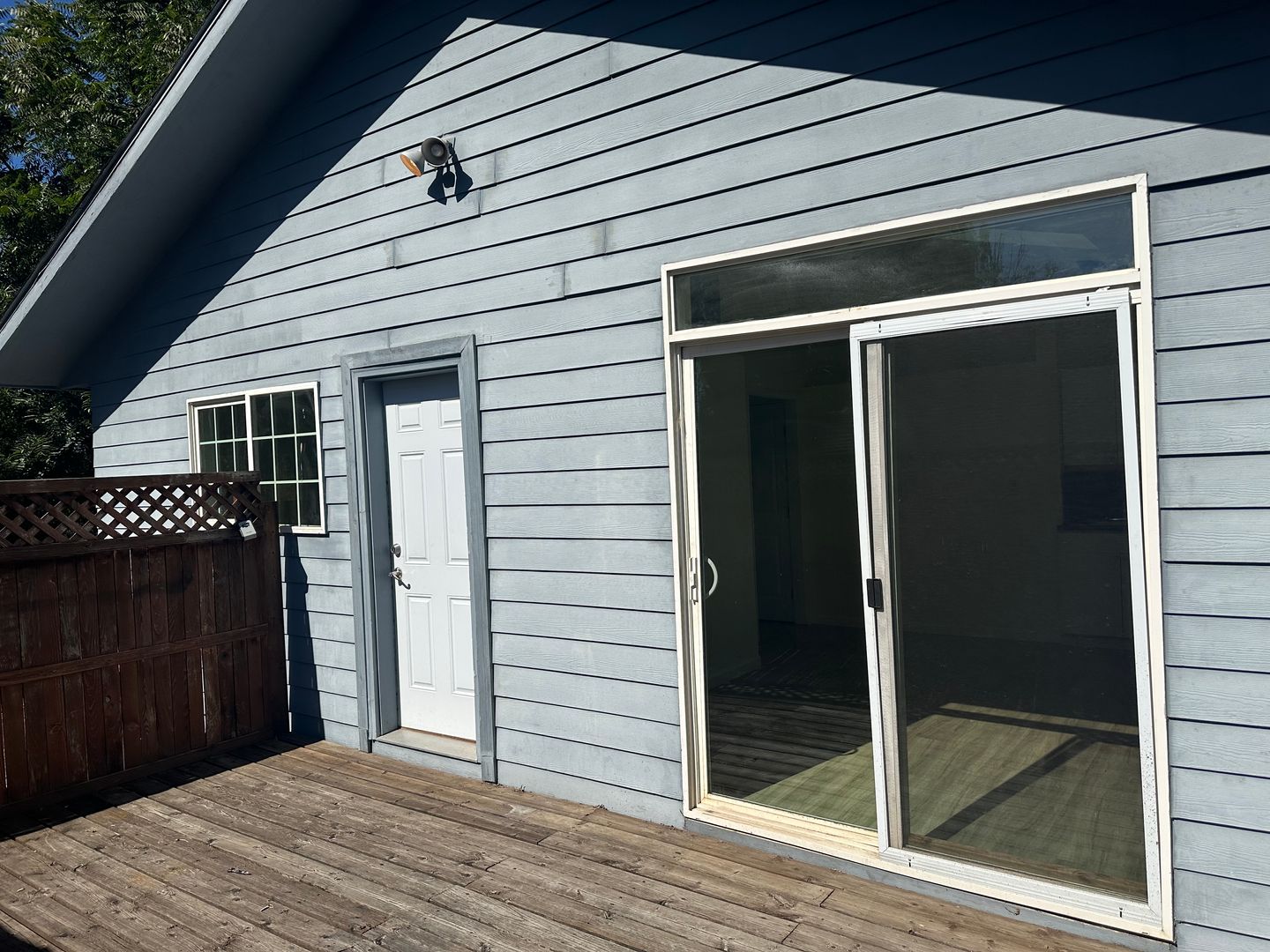 Door from the bedroom to the deck as well as a sliding door from the living to the deck.