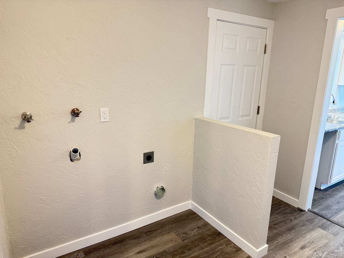 Washer/dryer hookups in laundry room attached to the garage.