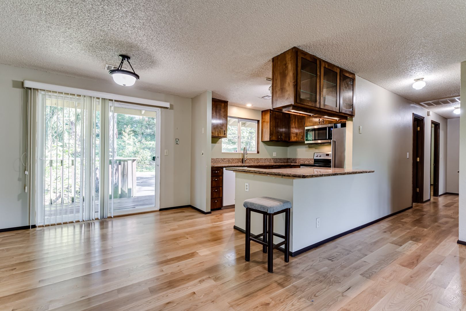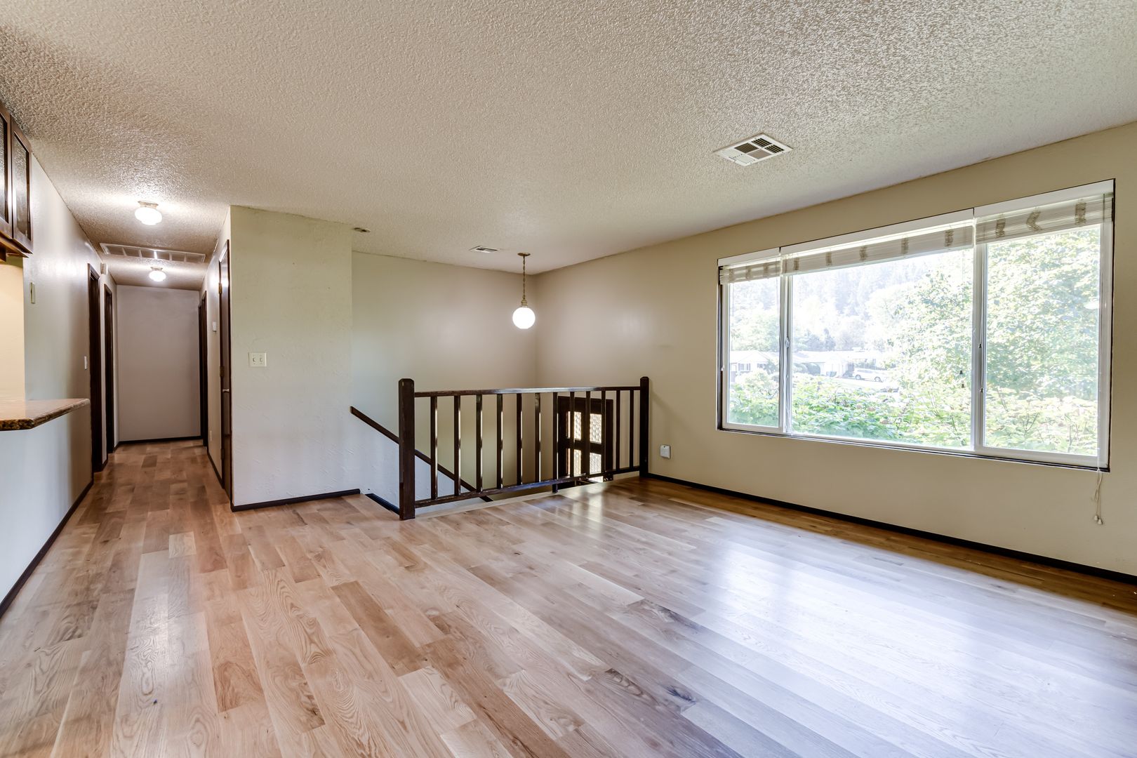 Upstairs, the living room has great views! Dining room with a sliding door to the deck. The kitchen has stainless appliances and a breakfast bar! Tons of windows provide lots of light!