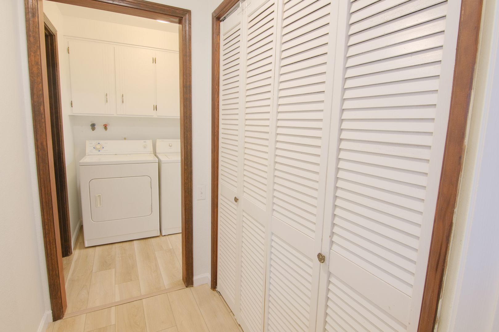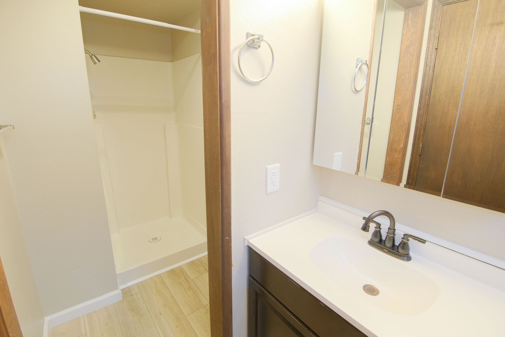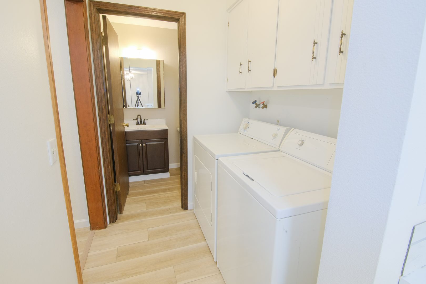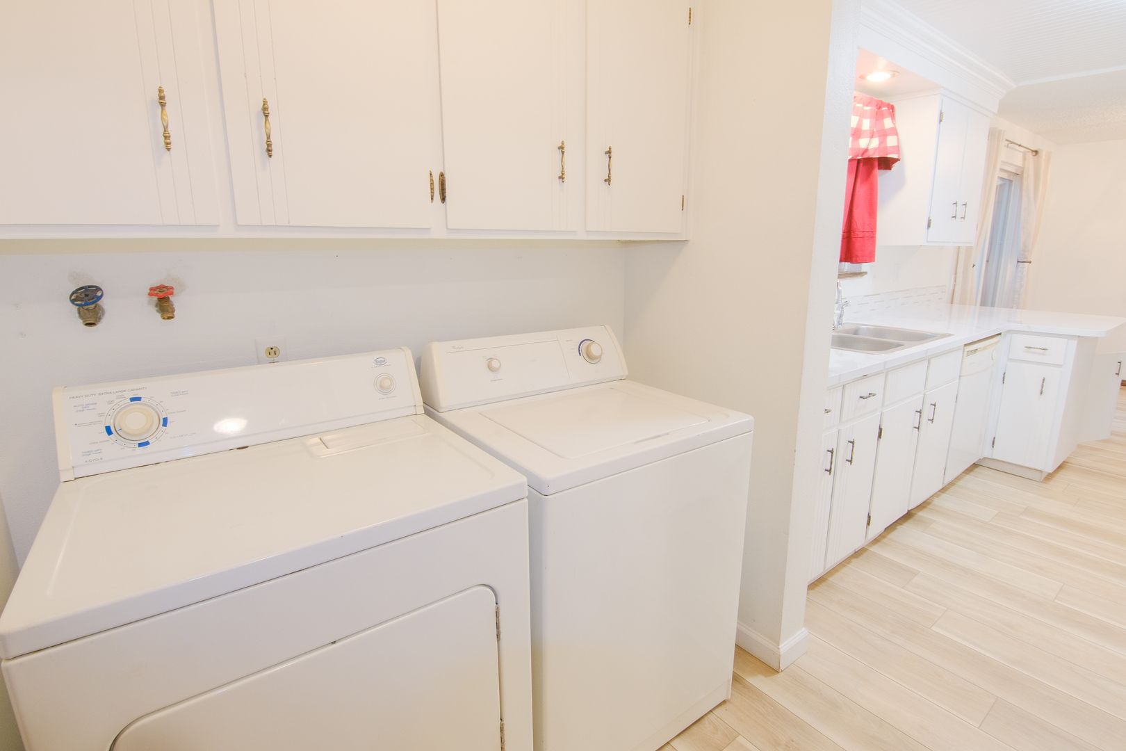 Downstairs there is one bedroom, one full bathroom with walk in shower, and laundry with the washer and dryer provided.