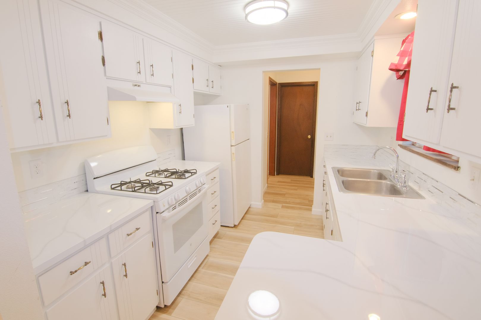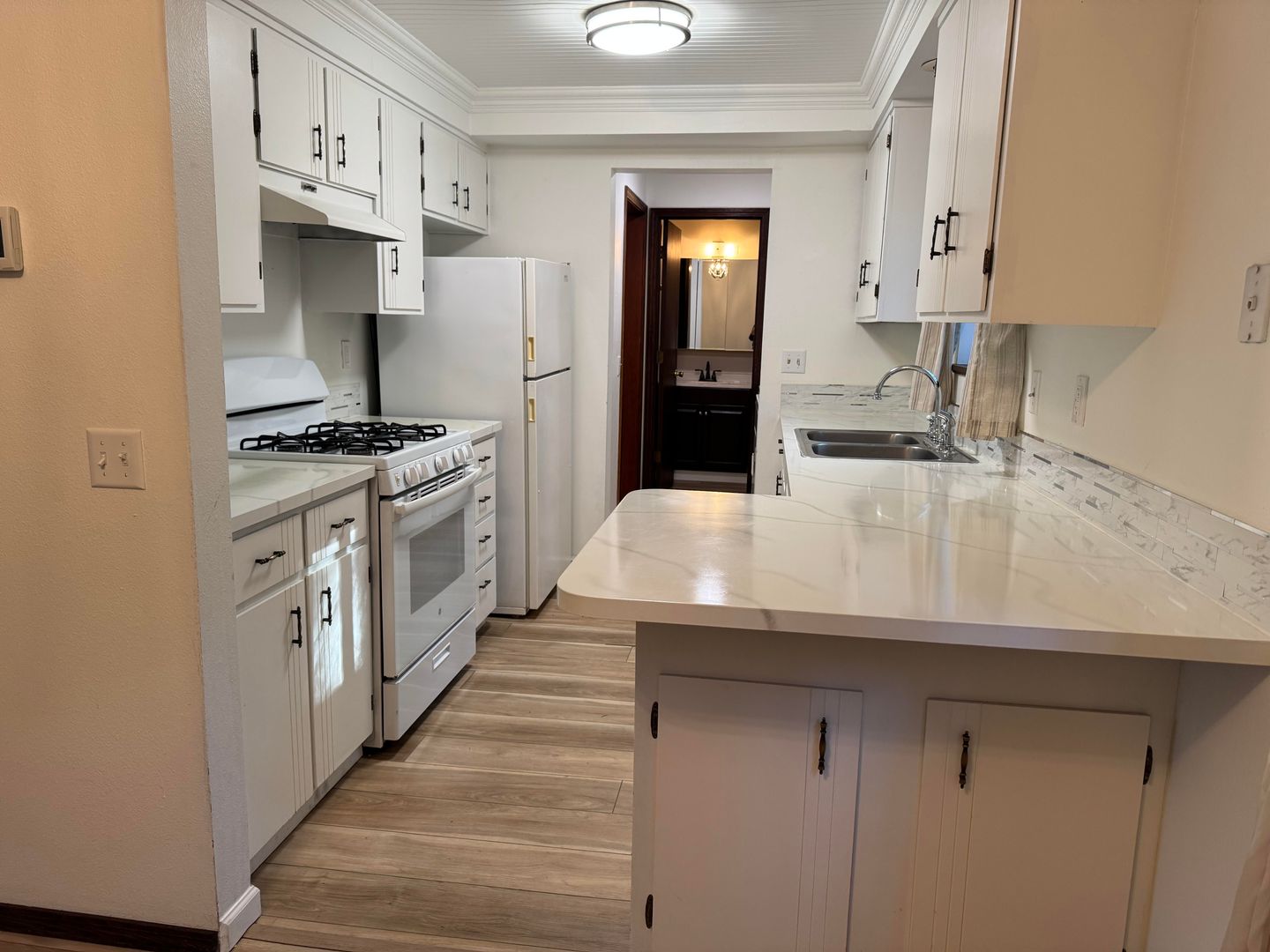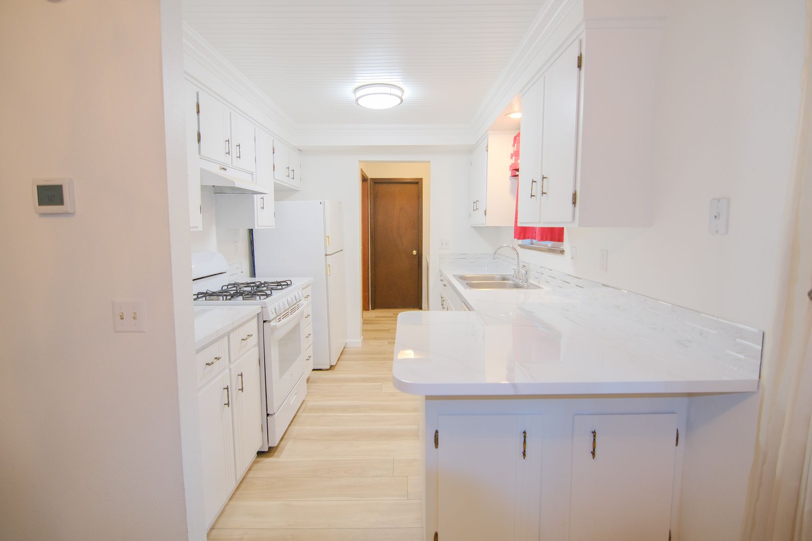 The kitchen has been beautifully updated! New countertops, backsplash, crown molding and beadboard on the ceiling! Gas range for cooking.