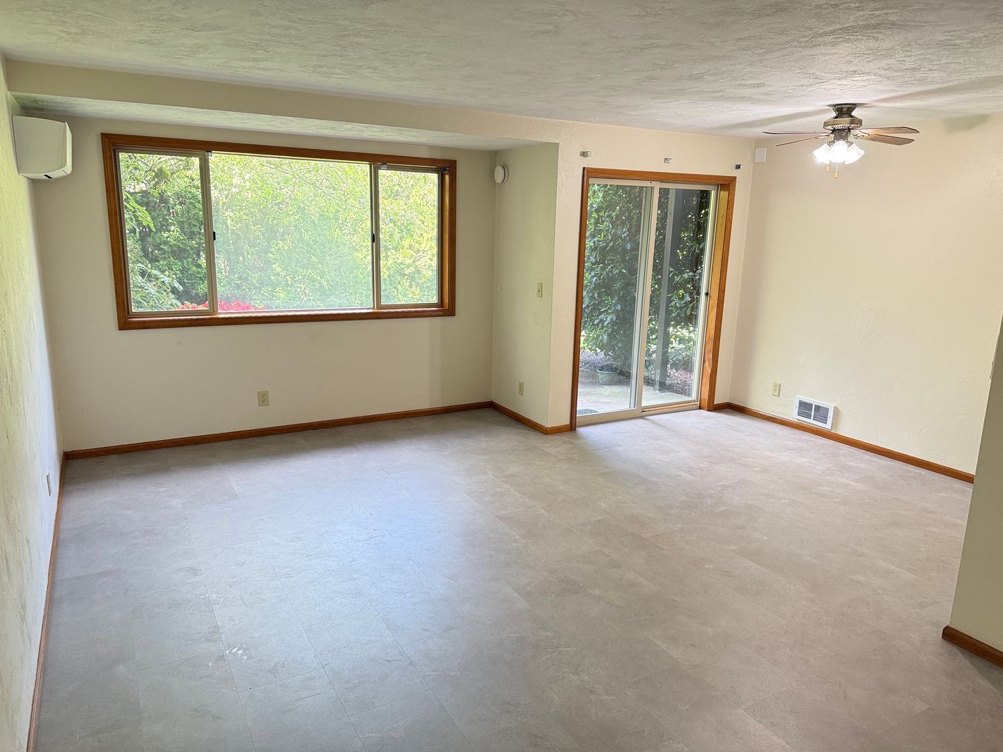 Large living room with a sliding door to the covered patio area. Perfect for the BBQ!