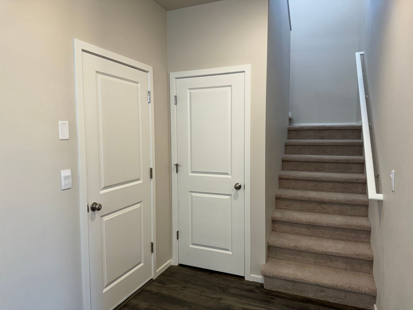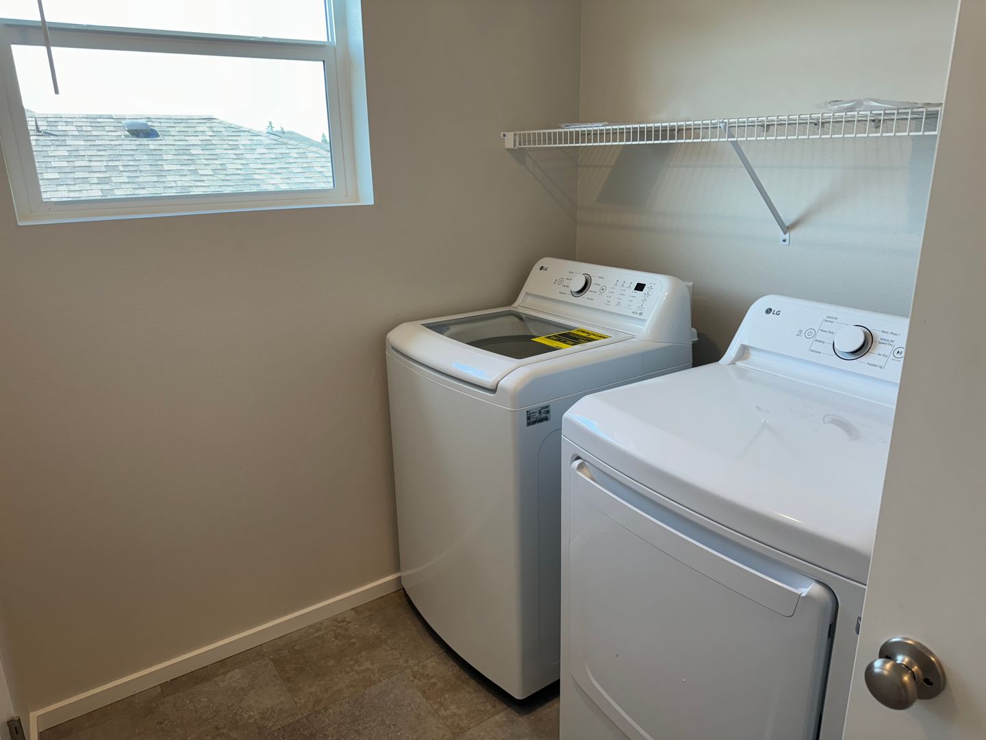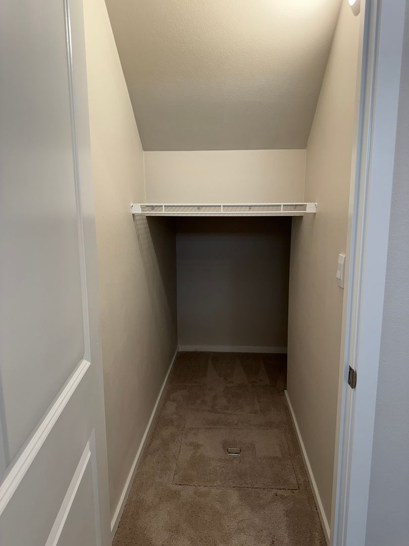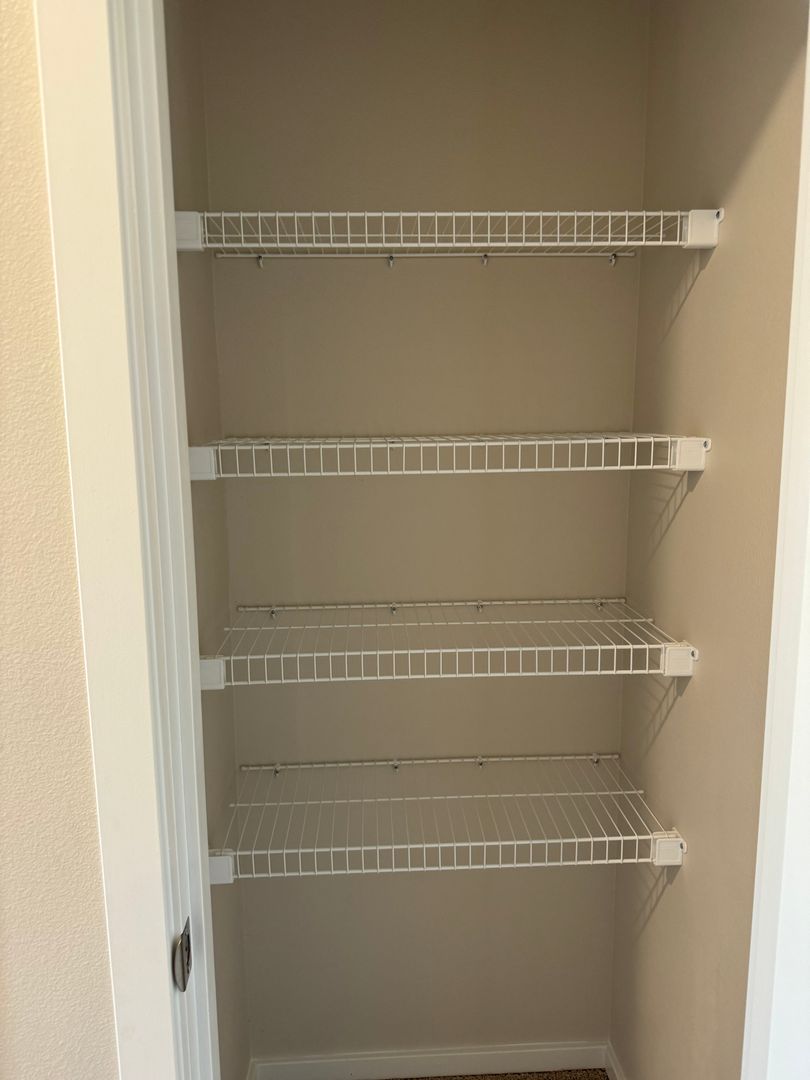 The half bathroom is downstairs, the laundry room is located conveniently upstairs with washer and dryer.