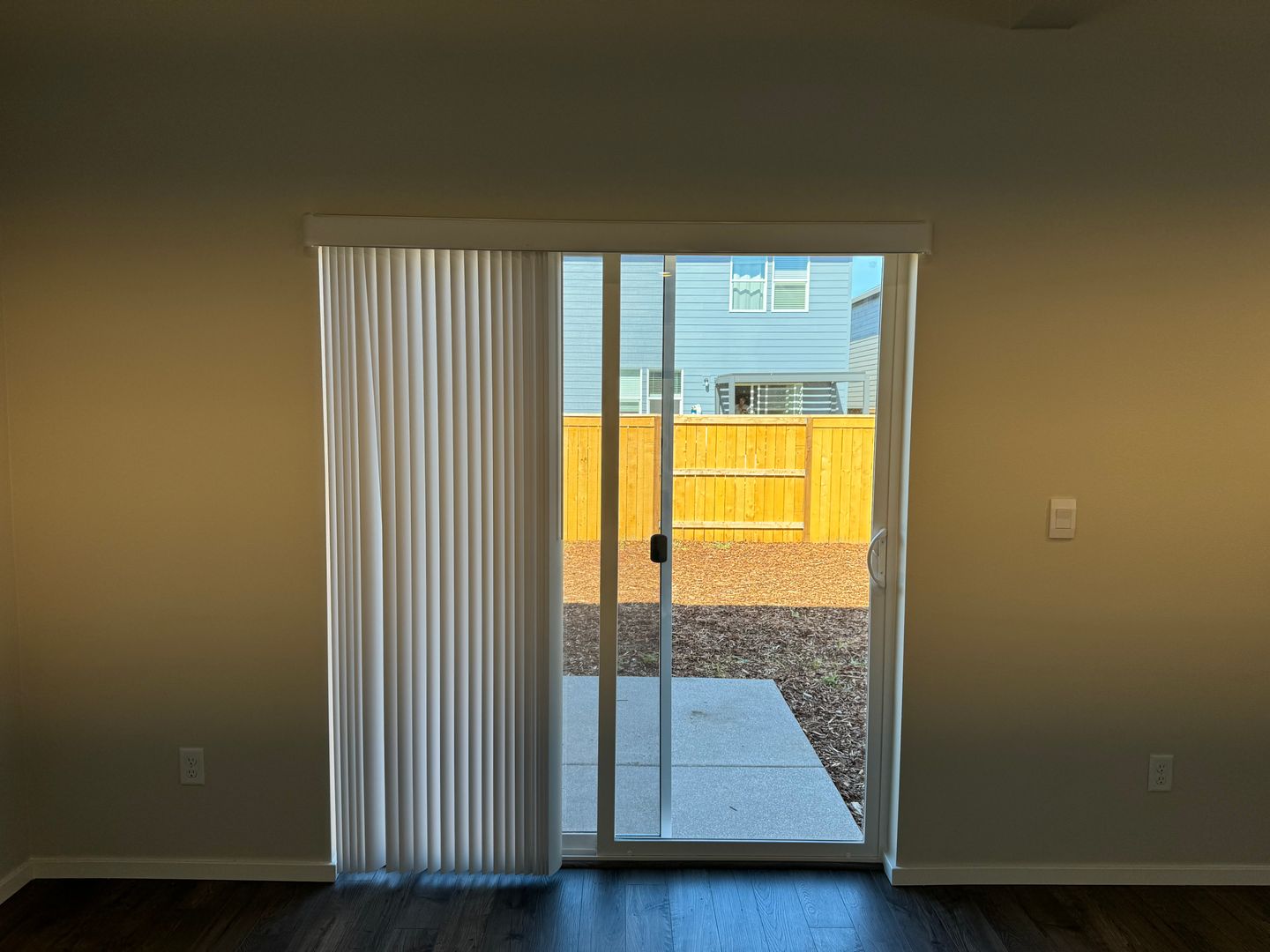 Fenced and low-maintenance back yard has a concrete patio area. Perfect for your BBQ!