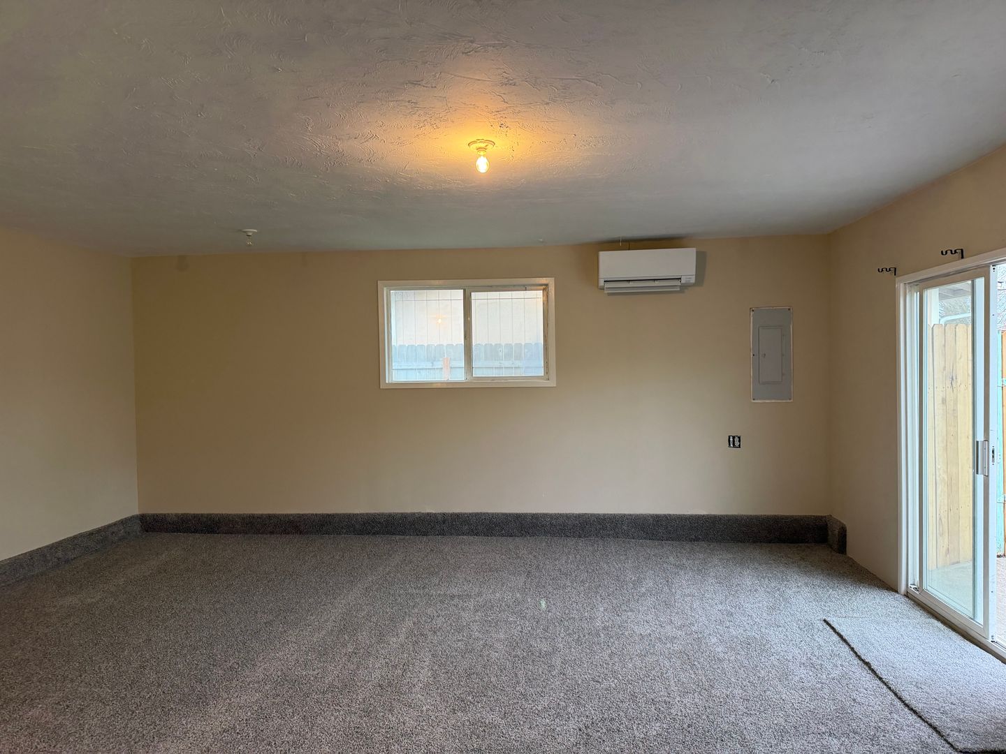 The living room flows into the kitchen. There is a sliding door from the living room to a concrete patio! Perfect for the BBQ!