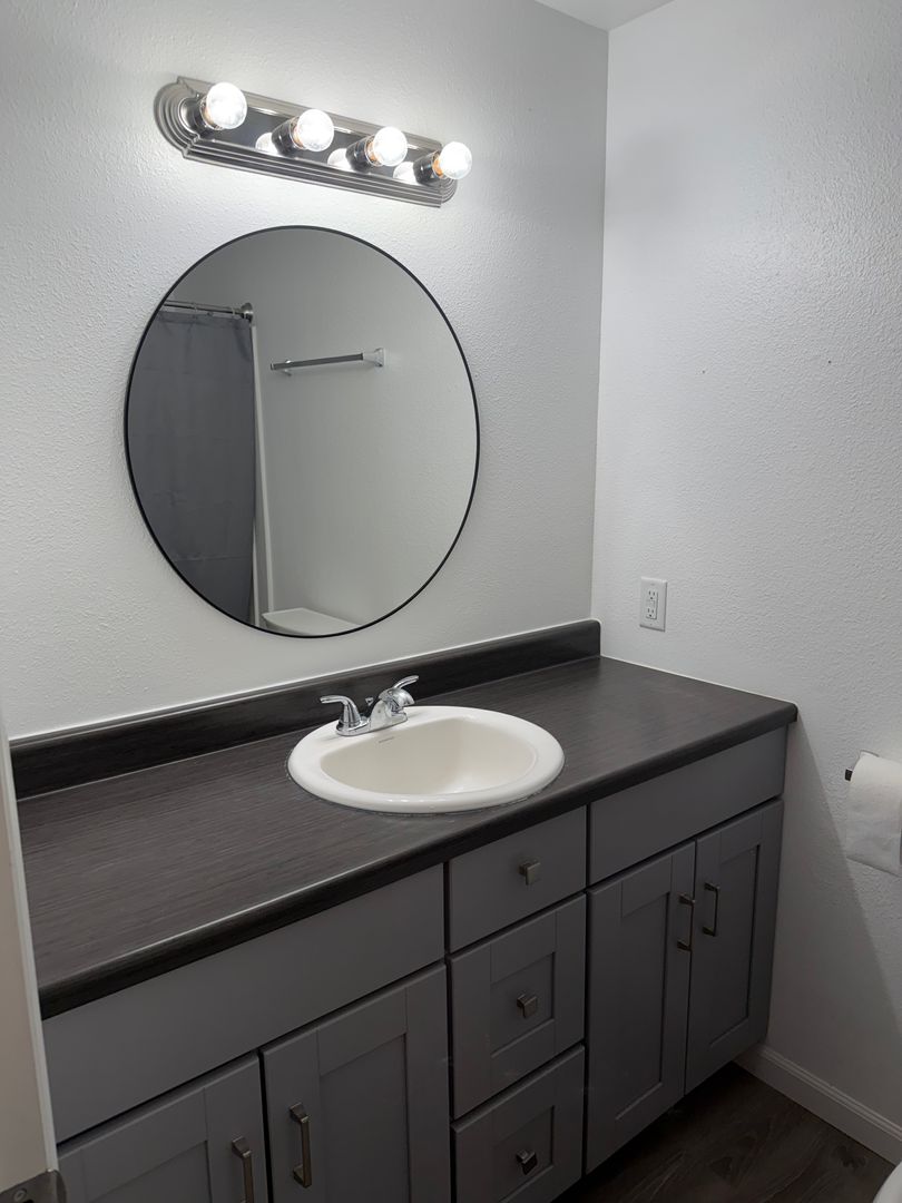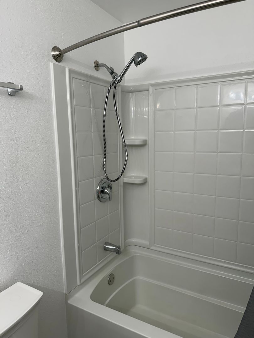 Full bathroom has a new shower surround.