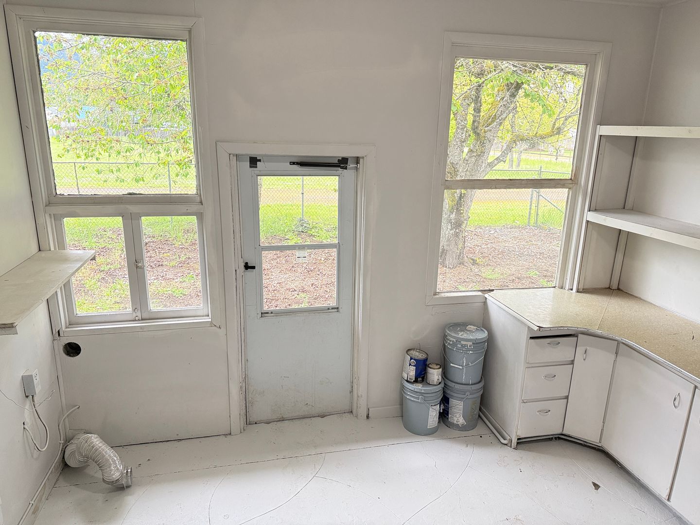 The large laundry room off the dining contains more storage and a door to the side yard.